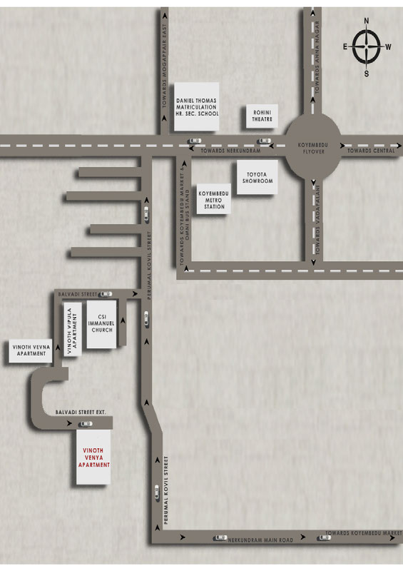 This project has been developed by “VINOTH BUILDERS” who is a reputed developer firm with experience in developing affordable liveable spaces for homebuyers since 1996. Koyambedu is well-connected to other parts of the city by road, which passes through the heart of this suburb. Prominent shopping malls, movie theatre’s, schools, and hospitals are present in proximity of this residential project.