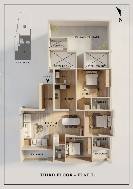 | T1 | 1683 sq.ft | 3BHK | Available | Private Terrace -296 sq.ft |