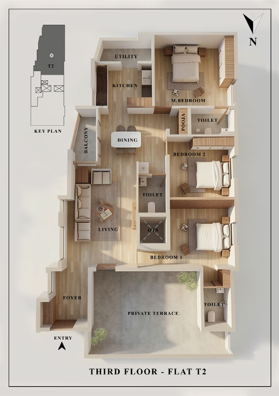 | T2 | 1723 sq.ft | 3BHK | Sold | Private Terrace -310 sq.ft |